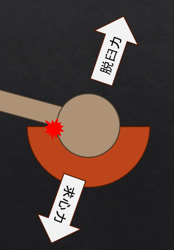脱臼力(外れようとする力) > 求心力(関節を安定させる力)