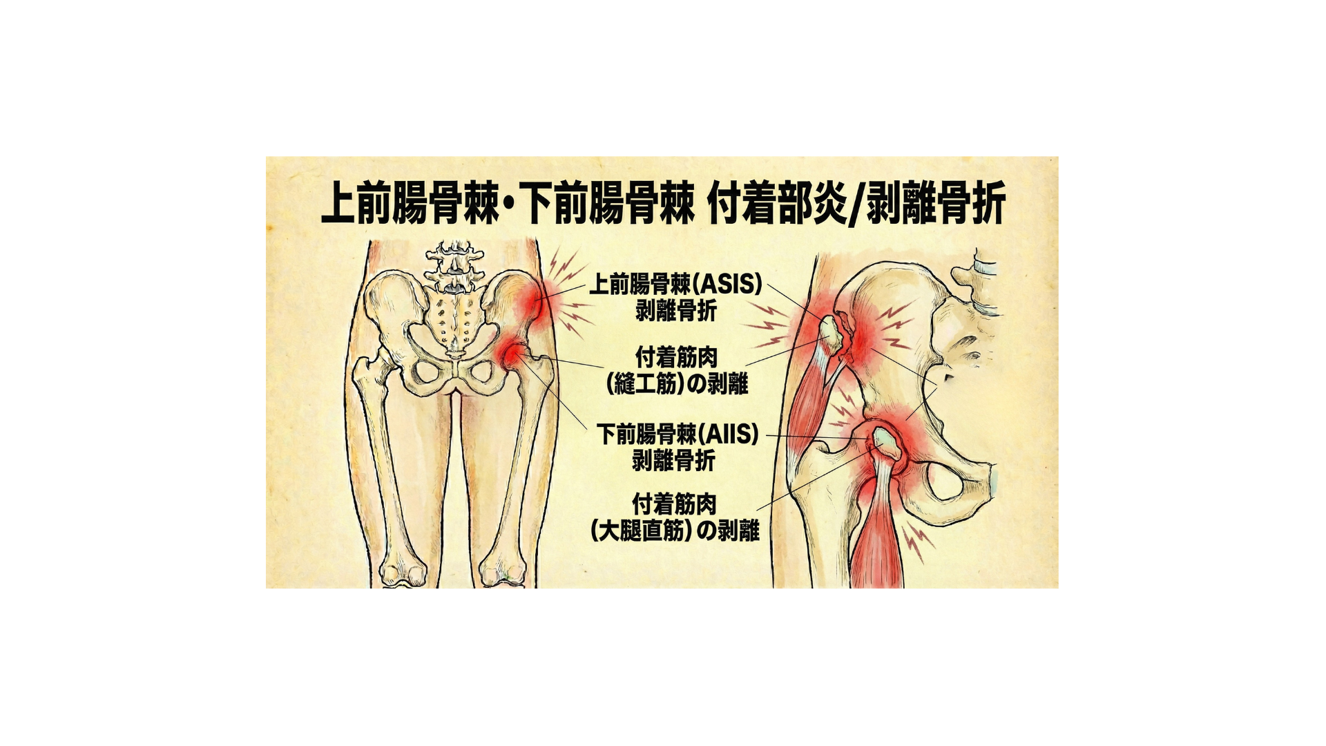 上前腸骨棘/下前腸骨棘 付着部炎/剥離骨折