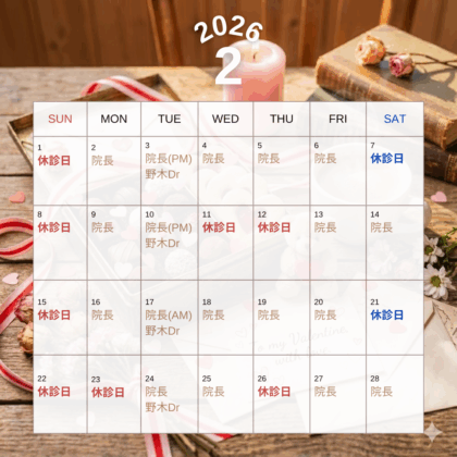来月の2月3日(火)午前、10日(火)午前、及び17日(火)午後は院長が手術支援のため不在となります。